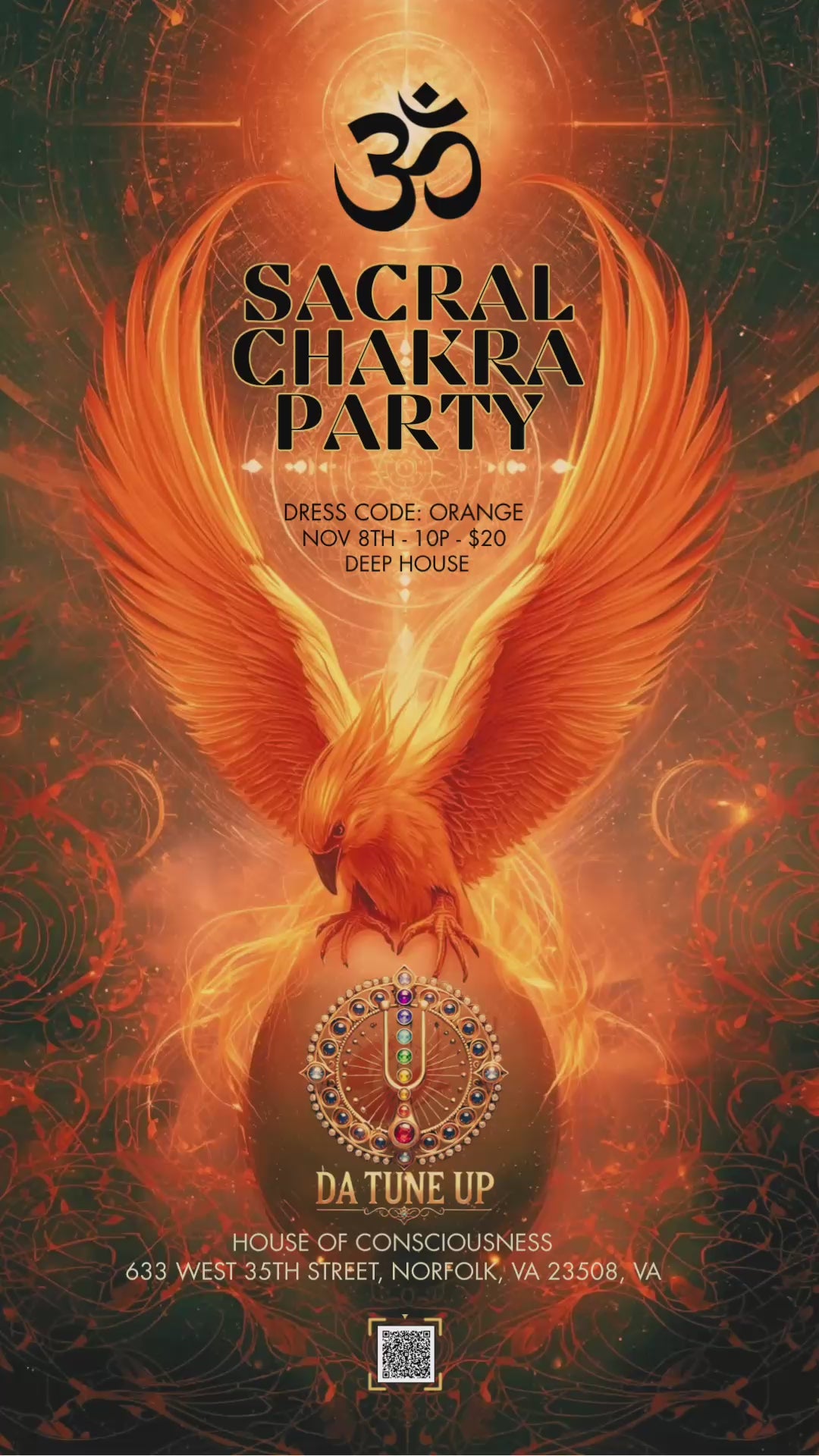 Creativity, sensuality, and a deep feeling of emotional connectedness! This party is all about realigning us with the energy stored deep in our creative space. From the radiant glow of the color orange that will bathe the atmosphere to the Deep Afro House music played by Dj Novakane Omega it will be a wholistic and immersive experience. We at Da Tune Up take pride in curating our spaces to be both enlightening and entertaining. We combine color therapy, sound therapy, healthy high frequency food options and several healing modalities within our events. So, if you feel called to ascend with us through the healing frequencies of chakra tuning come out on December 6th to tap into your pleasure center and enjoy life Tune up style!